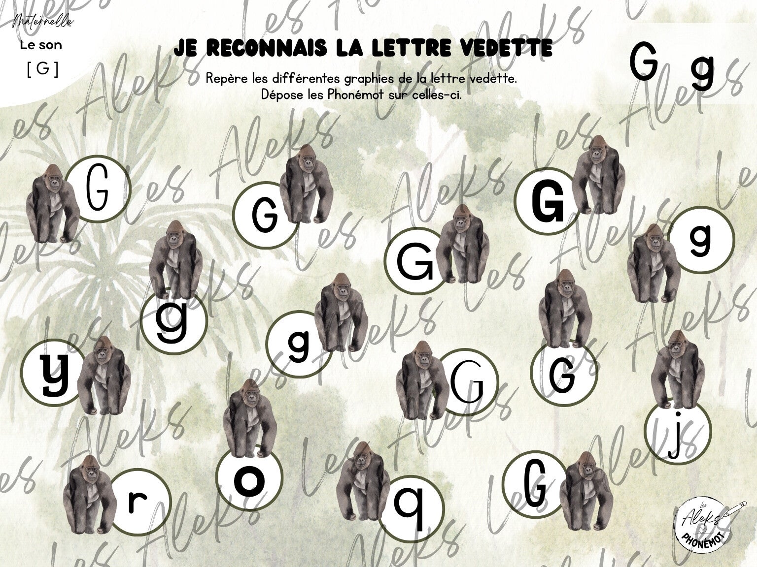 - 1 fiche << Je reconnais la lettre vedette >> permettant de travailler la discrimination visuelle de lettres et la reconnaissance de différentes graphies de la lettre vedette.