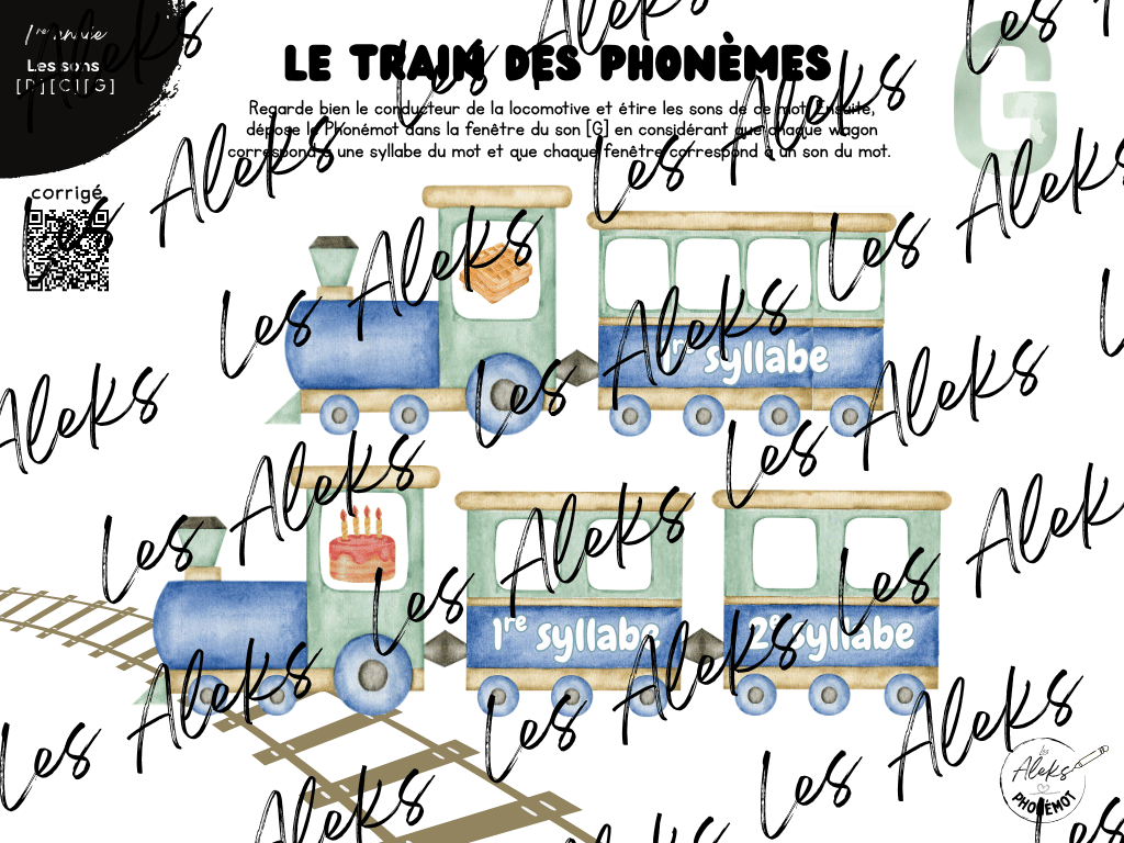 - 3 fiches << Le train des phonèmes >> permettant de travailler la segmentation de mots en phonèmes et le repérage de sons dans des mots.