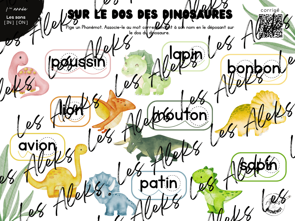 - 1 fiche << Sur le dos des dinosaures >> permettant de travailler la lecture de syllabes.