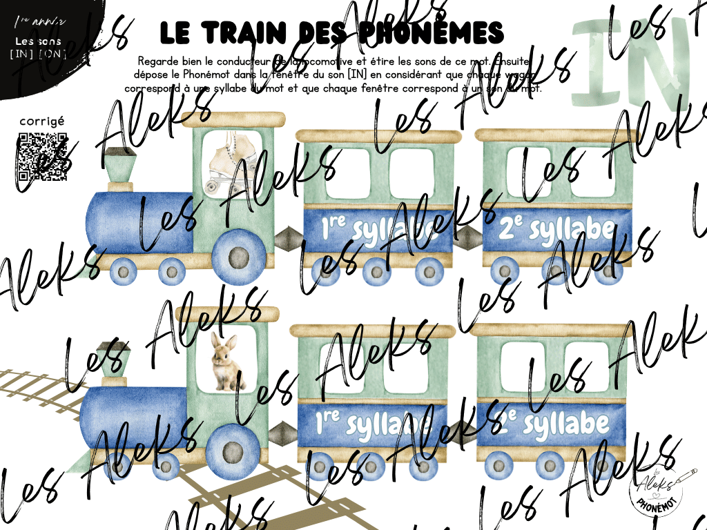 - 2 fiches << Le train des phonèmes >> permettant de travailler la segmentation de mots en phonèmes et le repérage de sons dans des mots.
