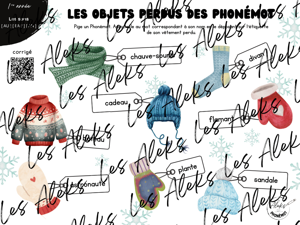 - 1 fiche << Les objets perdus des Phonémot >> permettant de travailler la lecture des mots.
