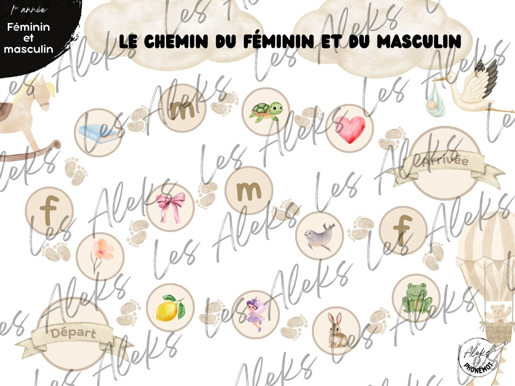 Cet ensemble, qui vise à consolider la notion grammaticale du féminin et du masculin, contient :