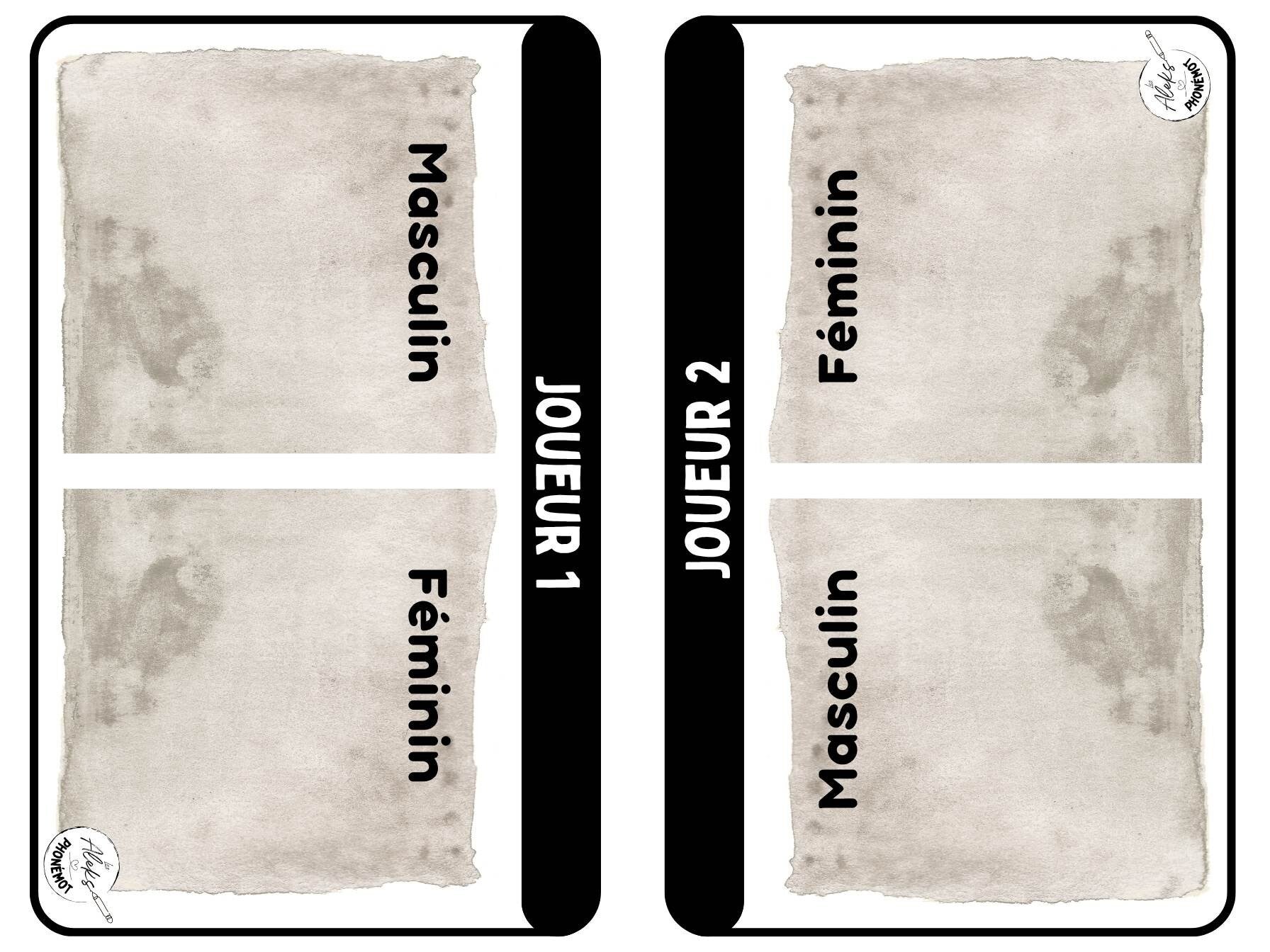 - Le chemin du féminin et du masculin : Un jeu qui amène les élèves à déterminer le genre des mots. Il peut se jouer à 2 personnes.