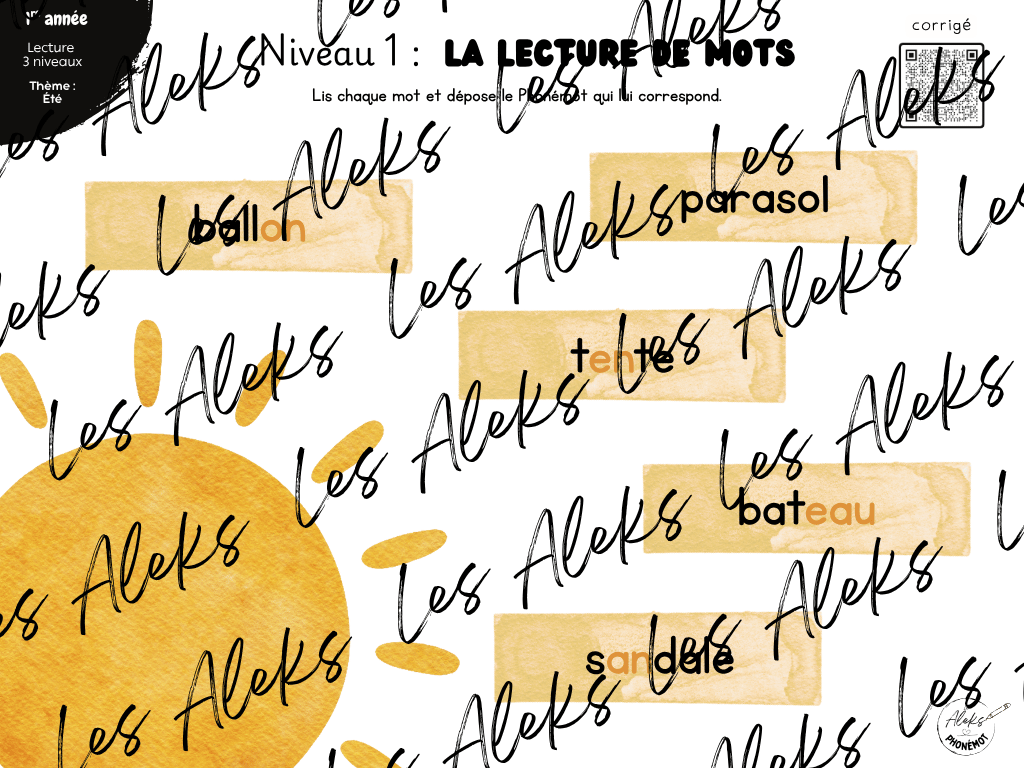 - 3 fiches, chacune incluant un corrigé accessible à l'aide d'un code QR: