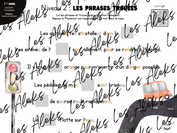 Lecture 3 niveaux : Moyens de transport - 1re année
