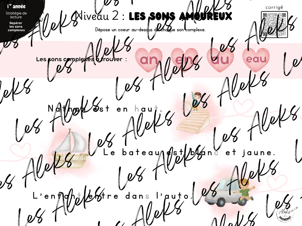 - La fiche Niveau 2 travaille les sons complexes ; an, en, au et eau